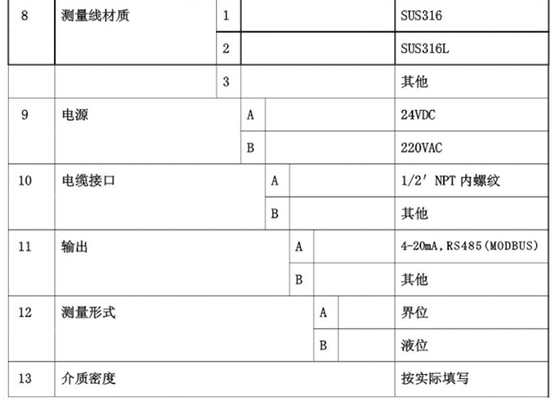 CF5600伺服液位計,測量量程10m,防爆等級普通型,拱頂罐,所測介質(zhì)為石油,缸內(nèi)壓力4MPa,有導(dǎo)向管,浮子材質(zhì)SUS304,測量材質(zhì)SUS316,24VDC電源,1/2NPT內(nèi)螺紋,4-20mA輸出,液位測量,介質(zhì)密度0.87